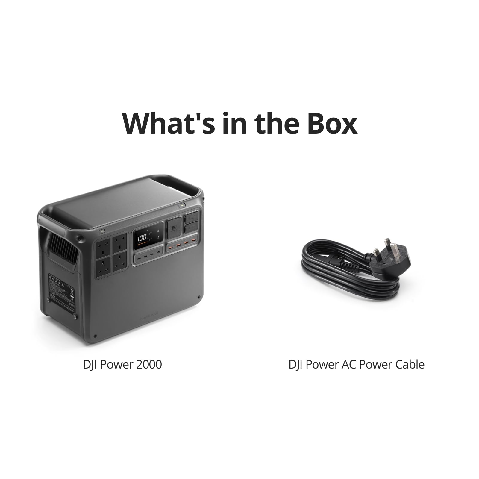 - Includes DJI Power 2000 Power Station and an AC Power Cable for fast charging. A reliable starter combo for home or outdoor use, backed by up to 5 years [12] of extended protection plan for peace of mind.