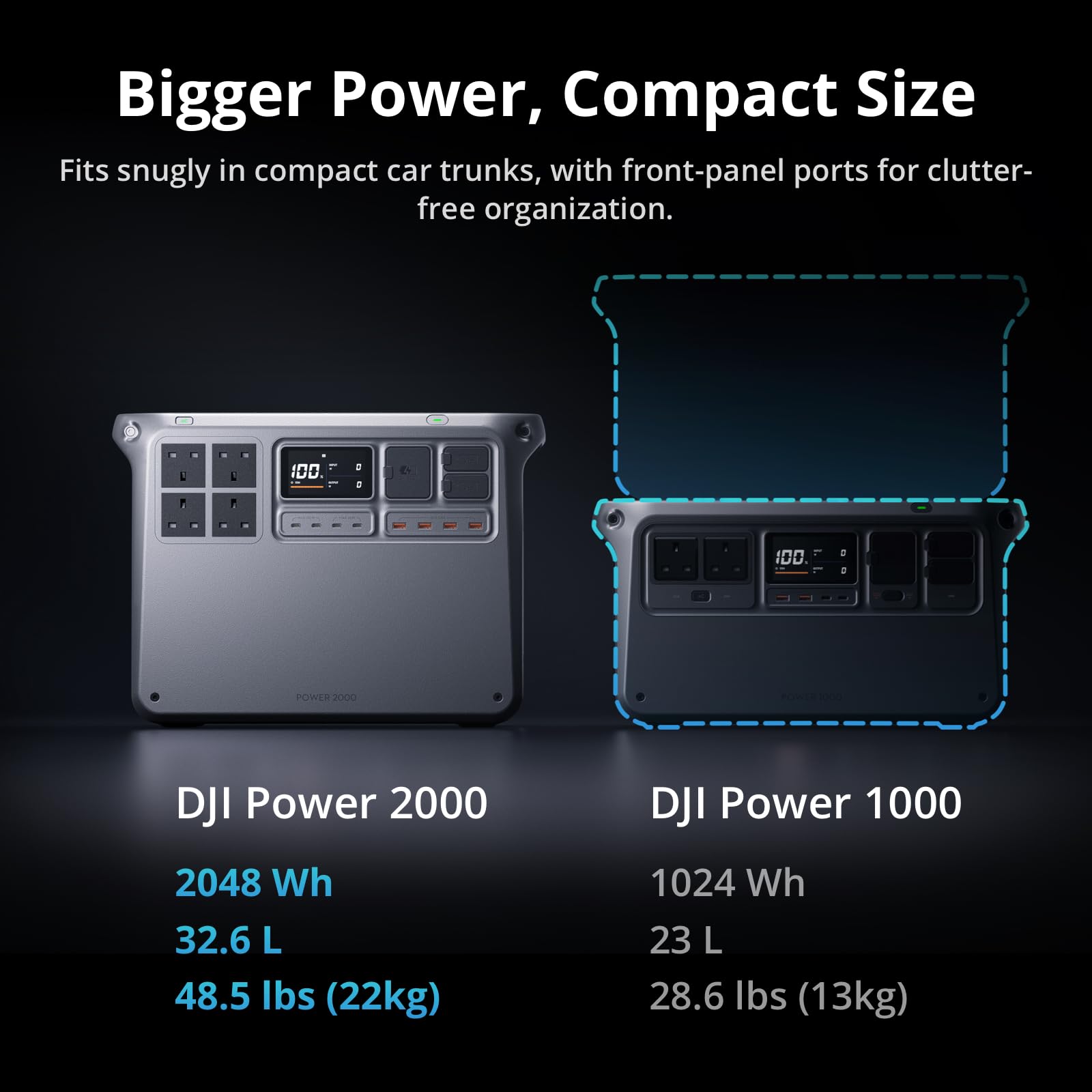 - Fast Charge Portable Power Station, Go Far - DJI Power 2000 recharges to 80% in just 45 minutes, so you're always ready for road trips, outdoor adventures, or emergency backup without long waits.