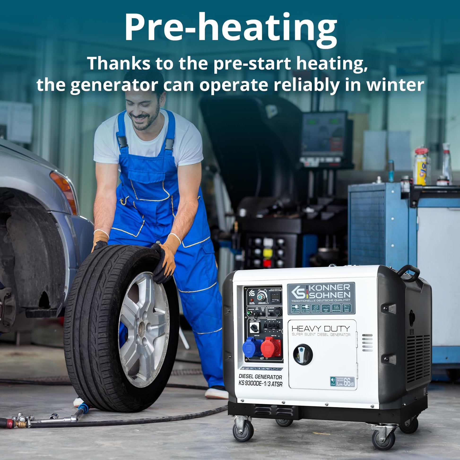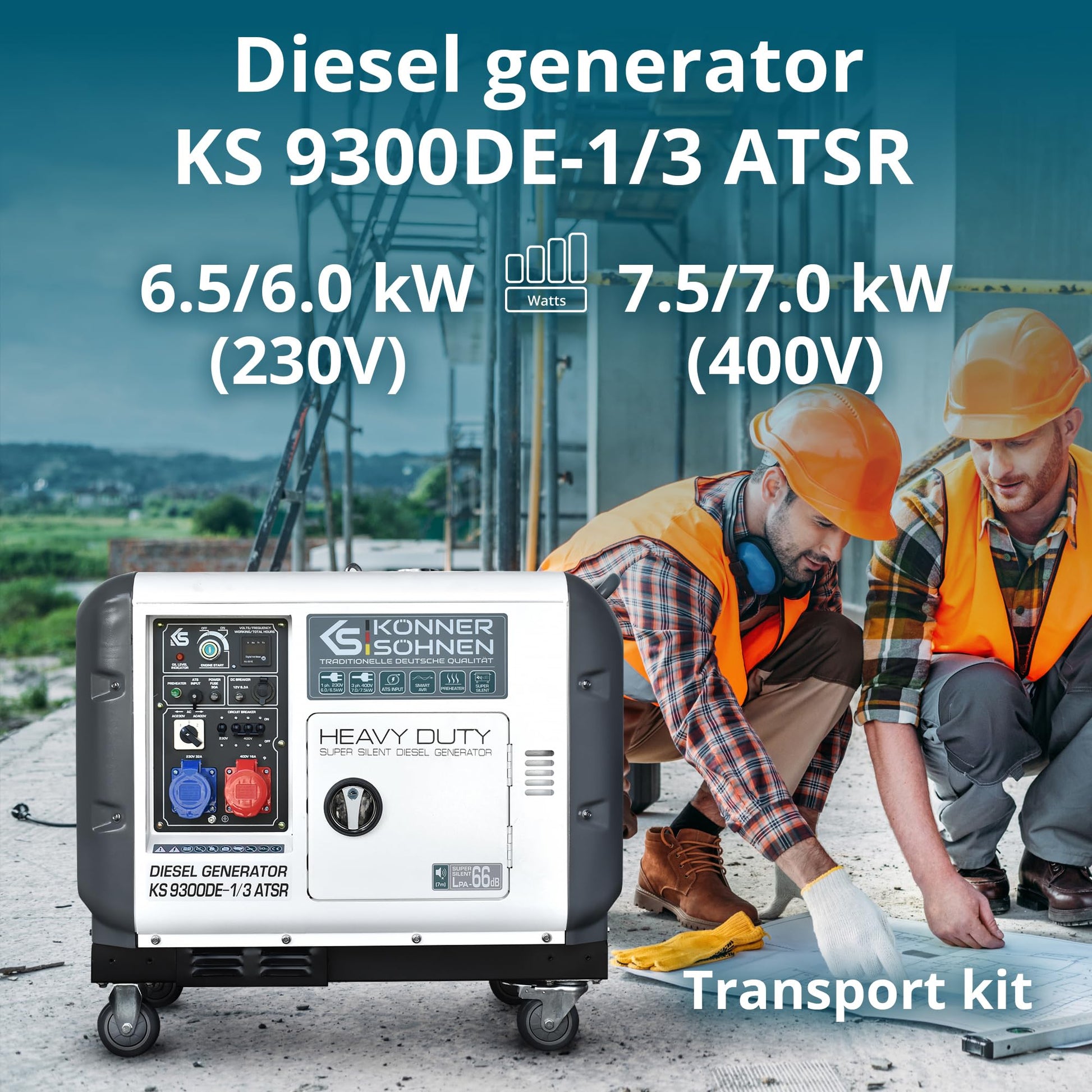 KS 9300DE-1/3 ATSR, diesel emergency generator 7500 W (400 V) / 6500 W (230 V), VTS phase switching system, diesel power generator EURO 5, LED display, air preheater, ATS connection
